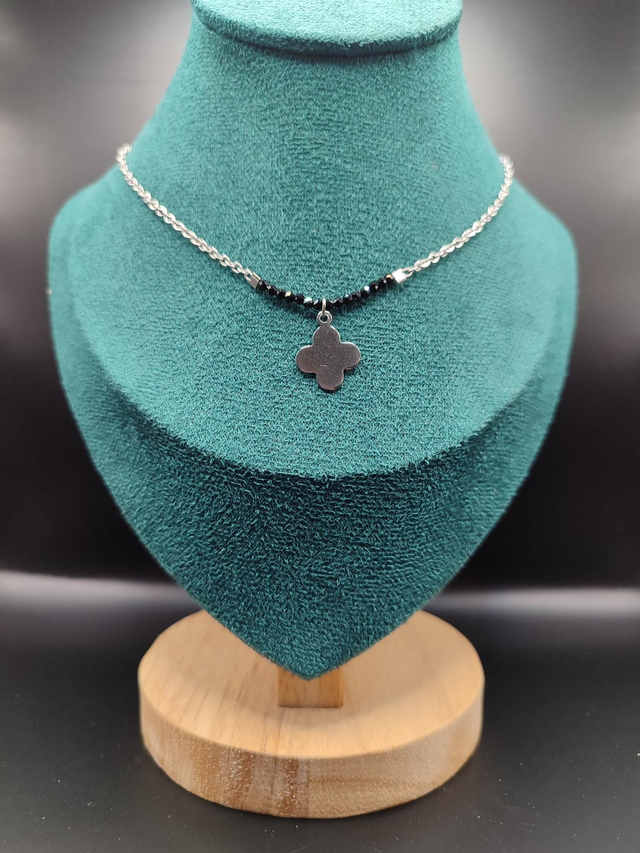 Trèfle et perles de verre noires